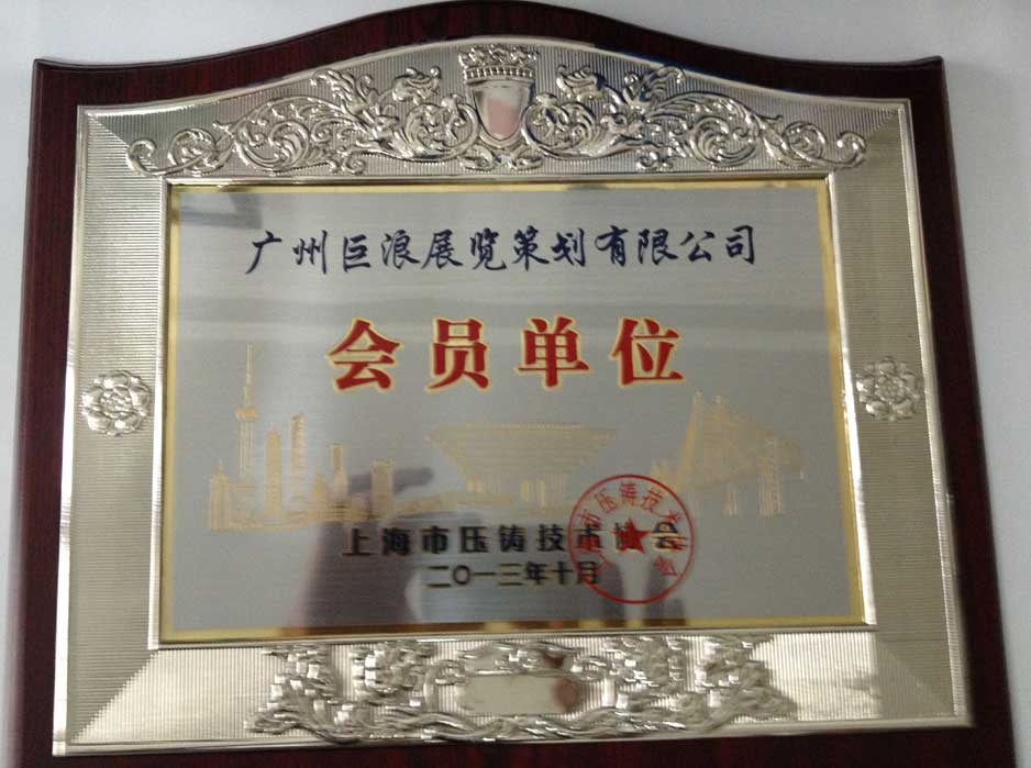 廣州巨浪展覽策劃有限公司加入上海市壓鑄技術(shù)協(xié)會會員